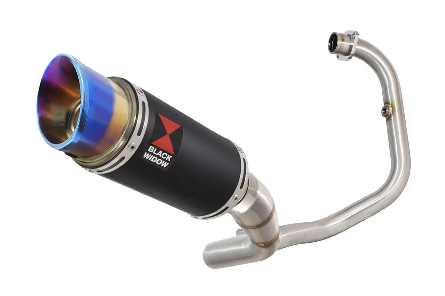 Akuma 125 2020-2023 De-Cat Exhaust System 200mm Round Blue Tip Black Stainless Silencer